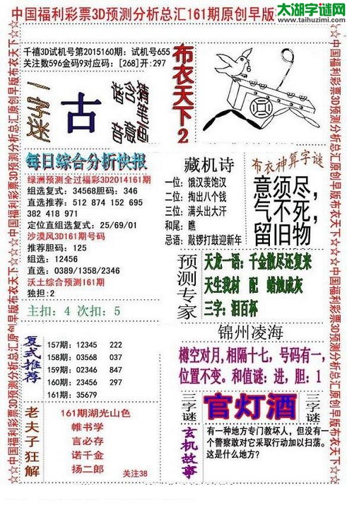 3d15161期:锦州凌海+黑圣手+太阳红字谜