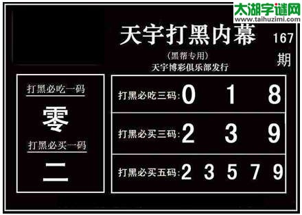 3d167期:天宇图谜(胆码杀号+必买五码)