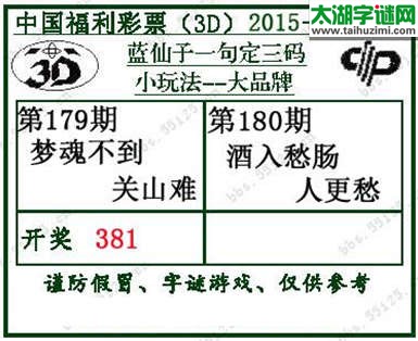 【柔情似水】2015年3D180期太湖字谜解析