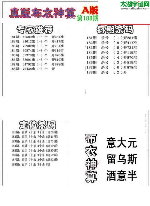 3d188期:【鬼六神算】胆码图+绝杀一码