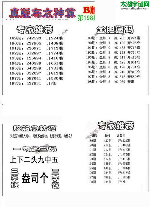 3d15198期:福彩3D字谜汇总