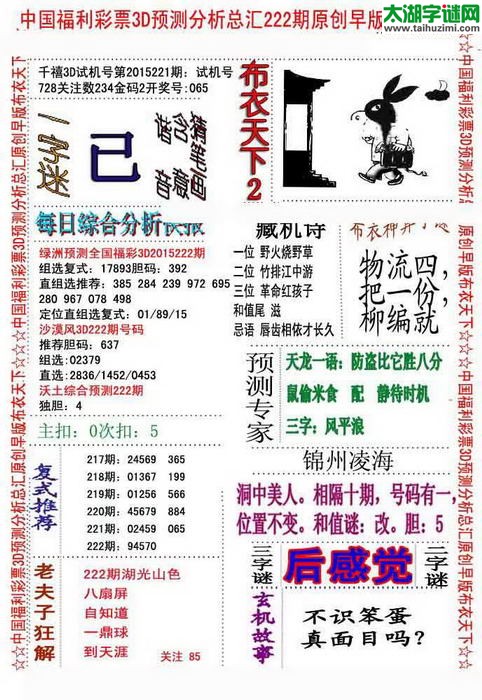 3d15222期:早版布衣天下图谜