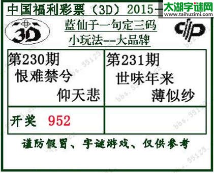 3d231期:蓝仙子一句定三码(薄似纱)