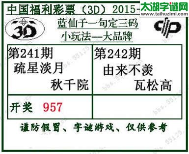 3d242期:天宇图谜(胆码杀号+必买五码)