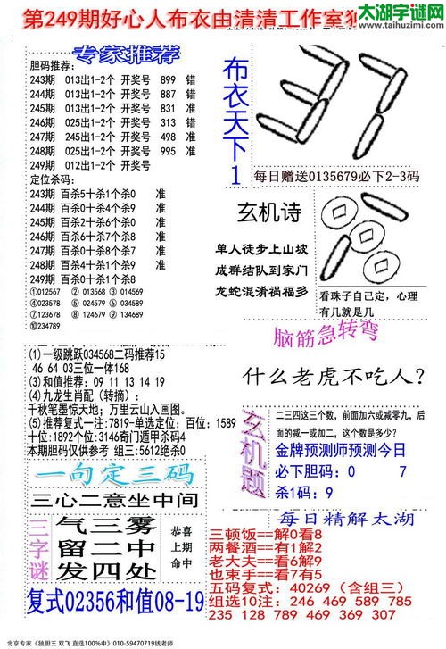 3d15249期:小糊涂+老糊涂+侠客字谜