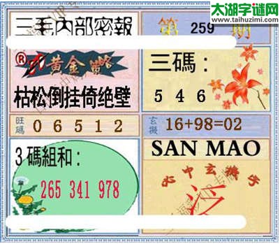 3d259期:天宇图谜(胆码杀号+必买五码)