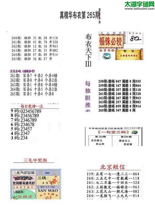 3d15265期:小糊涂+老糊涂+侠客字谜
