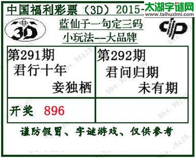 蓝仙子一句定三码第292期3D图迷:君问归期 未有期