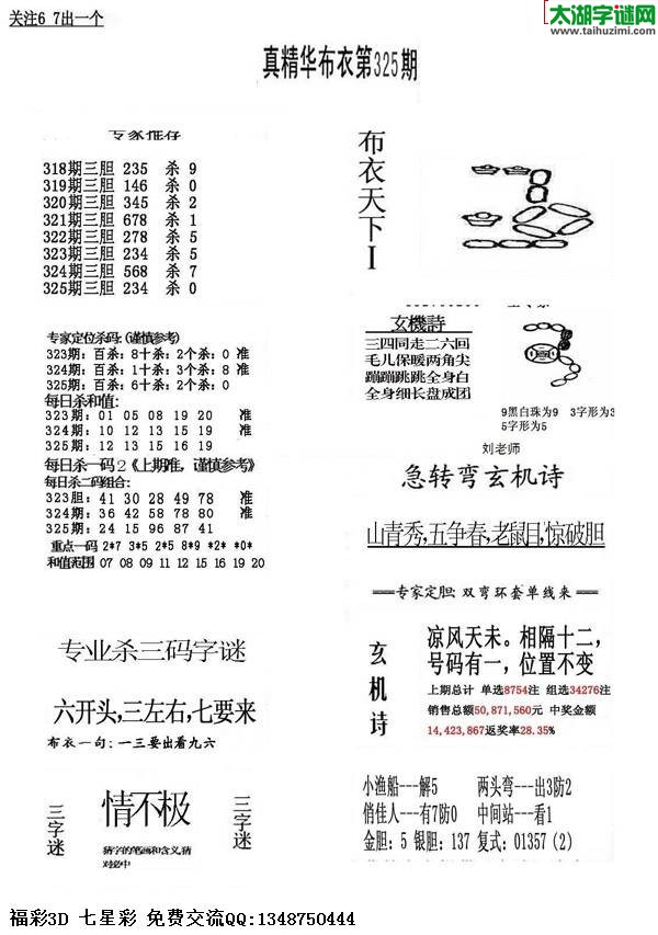 3d325期:天宇图谜(胆码杀号+必买五码)