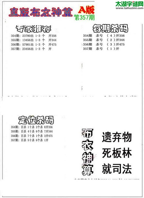 无能357期福彩3d太湖字谜解析