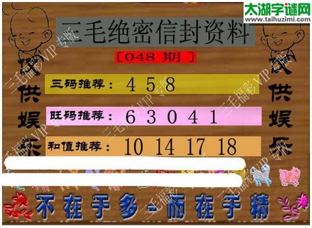 3d048期太湖字谜:猪八戒,有钉耙,一休