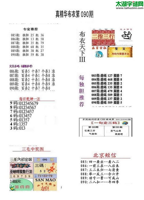 3d16090期:早版布衣天下图谜
