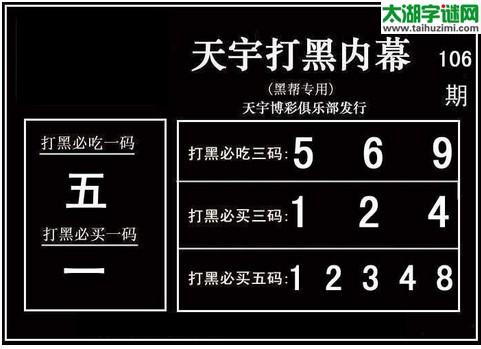 3d106期:天宇图谜(胆码杀号+必买五码)