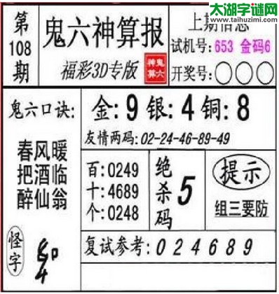 3d108期:鬼六图库3d图谜总汇