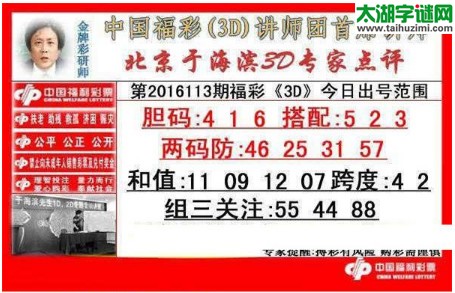 于海滨专家点评16113期福彩3d图谜:胆码416,搭配523