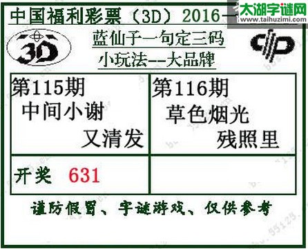 蓝仙子一句定三码第2016116期3D图谜:草色烟光 残照里