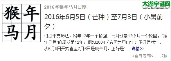 157期焰舞字谜:猴年马月