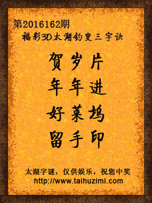 2016年福彩3d第162期太湖钓叟字谜:贺岁片,年年进,好莱坞,留手印
