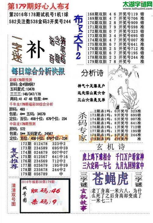 3d16179期:福彩3D字谜汇总