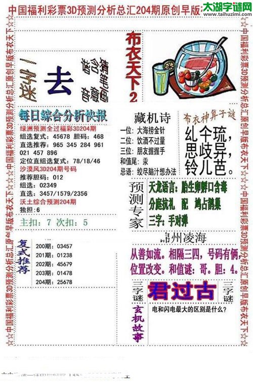 3d204期:蓝仙子一句定三码(舴艋舟)