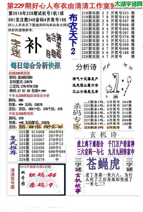 【玩彩老头】3D彩票第229期预测胆码+杀号