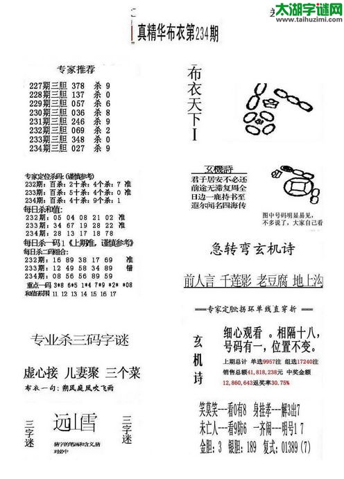 3d16234期:好心人布衣图谜
