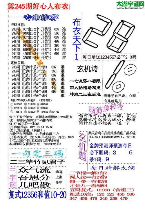 鲁大师解16245期太湖钓叟字谜 三节棍