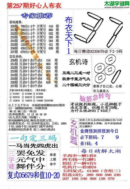 祈盼盼猜谜【 太湖钓叟 】2016257期