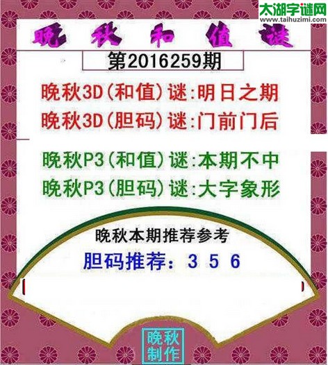2016259期P3晚秋(和值)谜:本期不中 D:大字象形